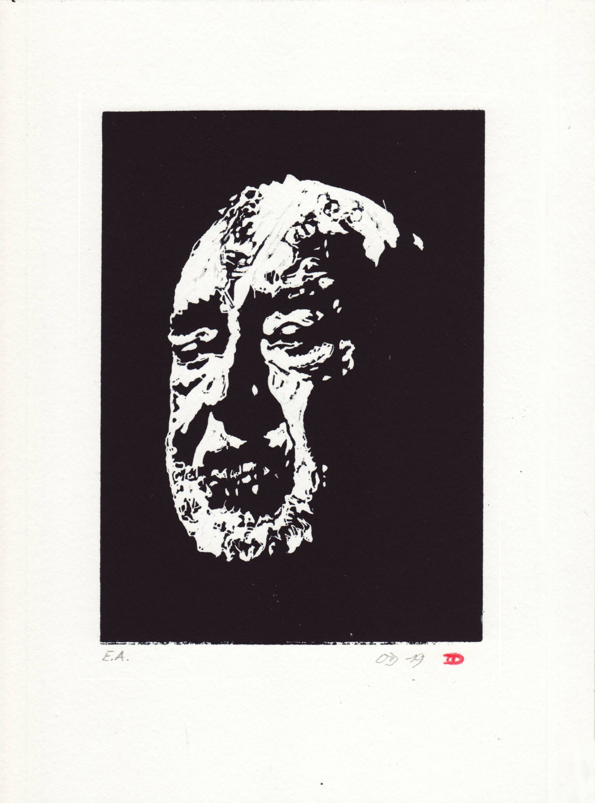 “Nørgaard” – linoleumssnit af Ole Damsbo – Damsbo Grafik (hvid kant)